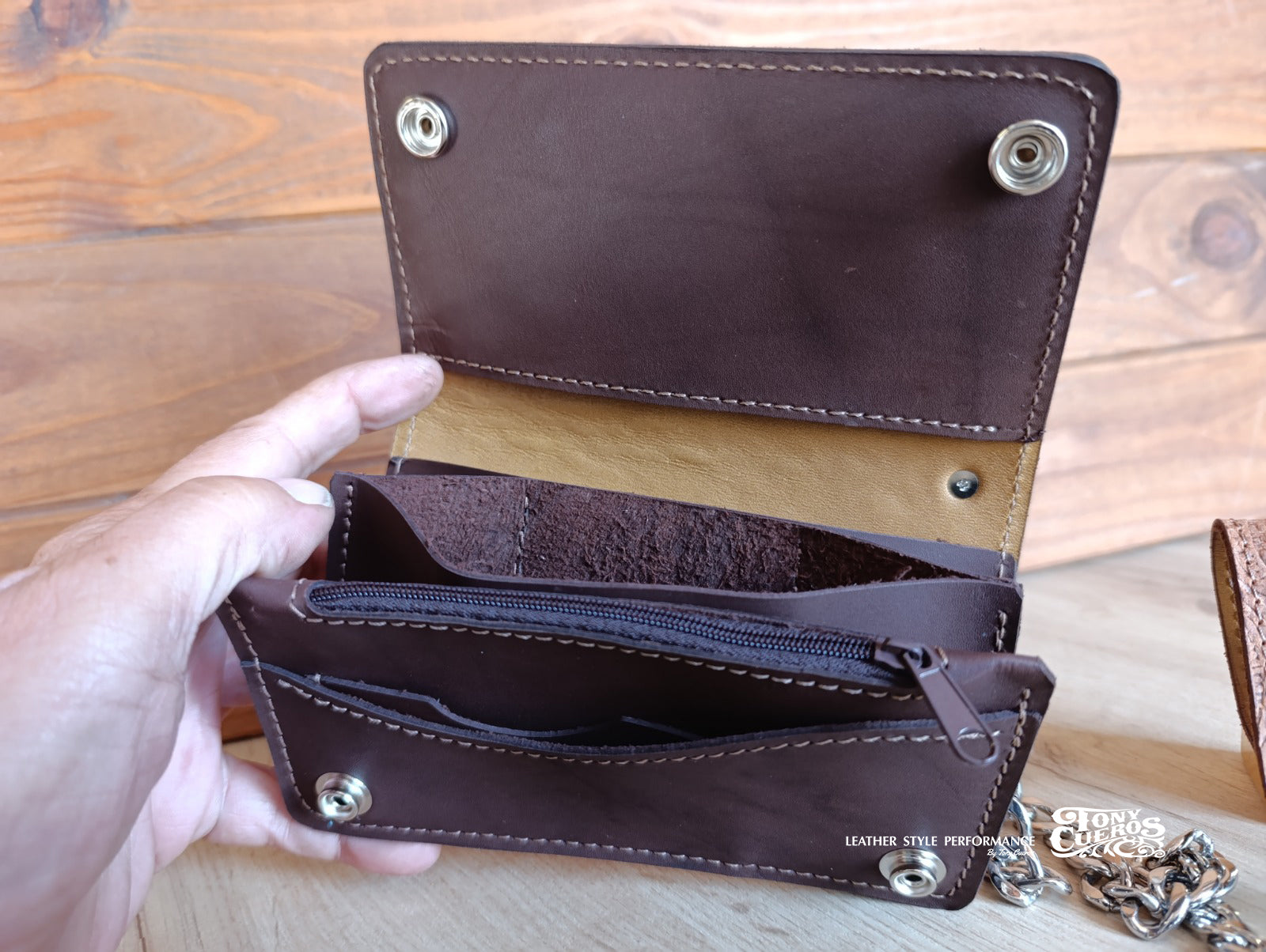 Artesanía en cuero para moteros, todo hecho a mano, genial.